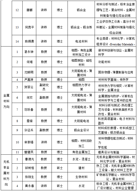 研究型课程:现代材料研究方法(研)、材料制备技术(研)。