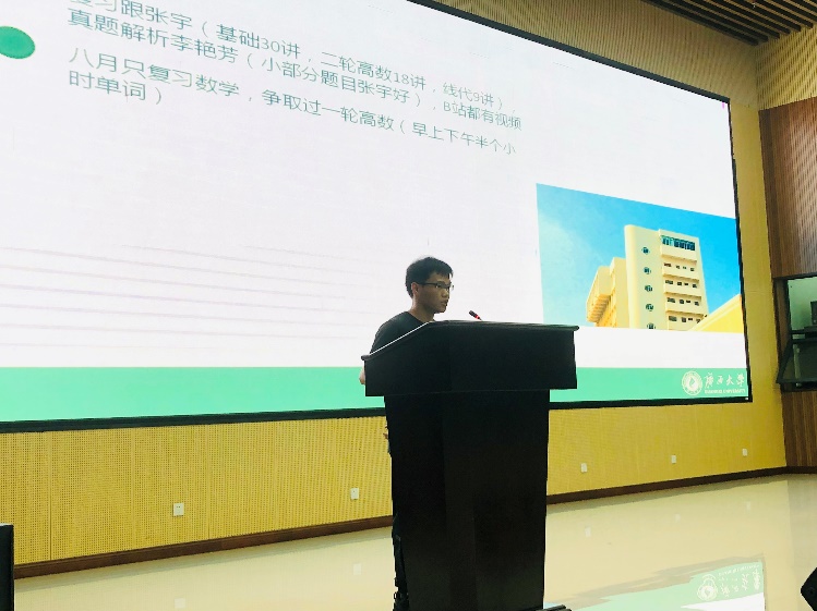 接着,材控专业2018级学生吴家宝、陶祖珊、吴晓聪就择校技巧、复习方法以及时间规划等方面开展考研经验分享。他们认为,考研成功的法宝包括合理的复习计划、较高的学习效率和平稳的学习心态。最后,他们祝福考研的同学们都能找到适合自己的学习方法,考上心仪的学校!
