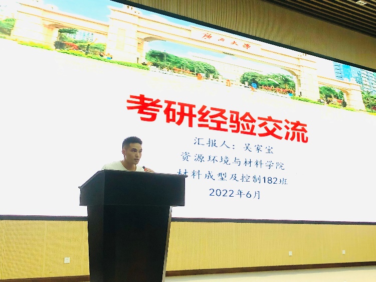 材料成型及控制工程专业在学院123报告厅举行2022年考研就业经验分享会,汤宏群、张盛华、韦春华、蒋奥克等专业老师出席本次会议并进行经验分享,材控2019级、2020级学生参加本次大会。