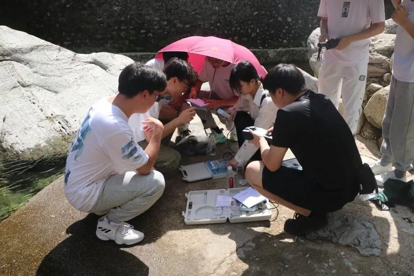 实践团师生们对下水源景区进行水质检测