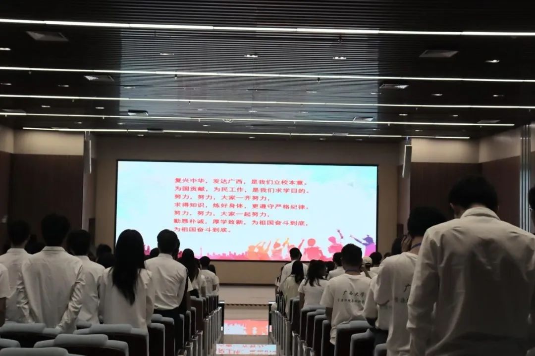 最后,学生会主席团成员覃彬烘带领全体团学组织成员宣誓,在全体成员合唱校歌后,明升88
