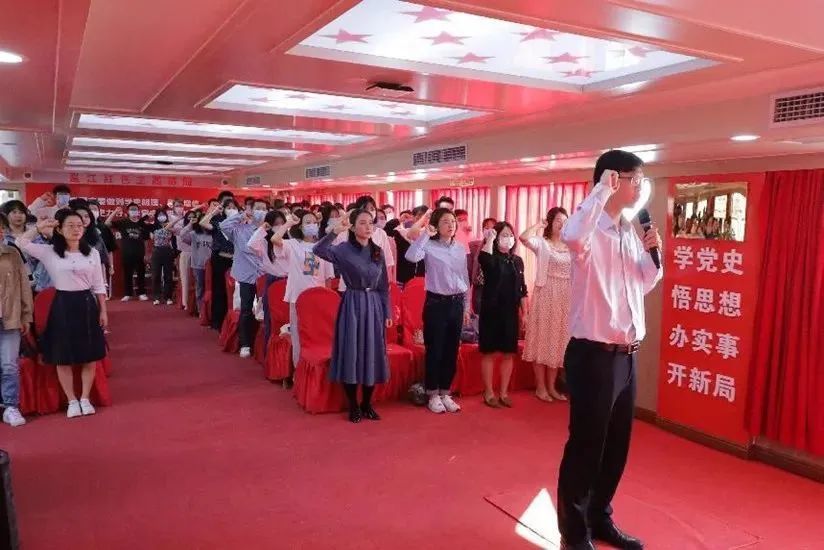 首先,孙翔老师带领师生党员们面向鲜红的党旗重温入党誓词,一句句铮铮誓言响彻现场、激荡人心;院党委副书记吴达慧老师对本次主题党日活动作动员讲话,她向大家讲解了“红船精神”的由来和内涵,并要求各位党员同志们铭记“红船精神”,学懂弄通、学深悟透党的二十大精神,不断深化思想认知。
