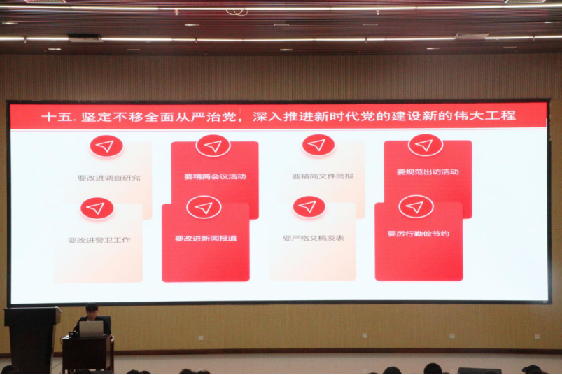 “薪火”理论宣讲团成员主讲,全院各班级学生积极参与。