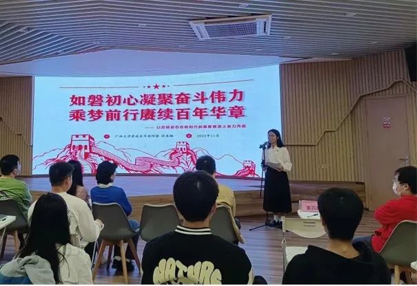 研究生先行连在漓江书院讲堂开展“学习党的二十大、永远跟党走、奋进新征程”主题学习活动。本次活动邀请了广西大学“君武青年讲师团”团长符其娴同学进行学习党的二十大精神主题宣讲,明升88