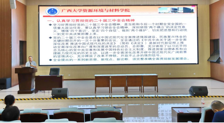 学院党委书记沈大强组织学习了党的二十届三中全会精神,对学校的相关工作部署进行安排,同时布置了学院学习宣传贯彻落实党的二十届三中全会精神的工作安排,对新学期的中心工作、主要任务进行布置。并特别提出,通过党的二十届三中全会精神的学习,老师要提高争做“四有好老师”“四个引路人”和践行教育家精神的思想行动自觉,学生要切实提升“五育并举”的素质与能力。