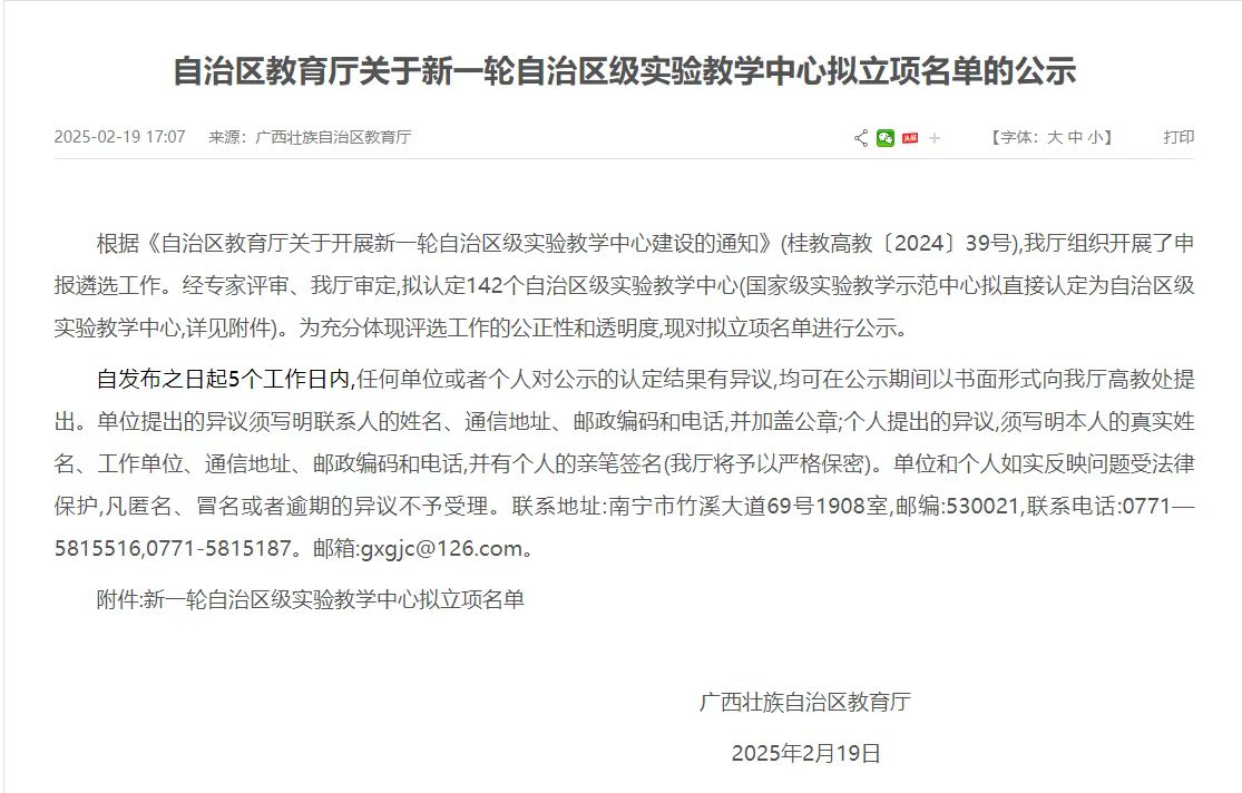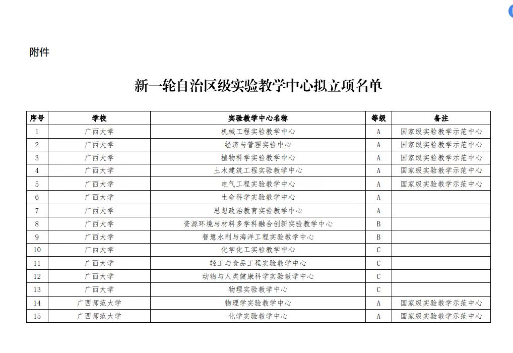 根据《自治区教育厅关于开展新一轮自治区级实验教学中心建设的通知》(桂教高教[2024]39号),区教育厅组织开展了申报遴选工作,经专家评审,区教育厅审定,明升88