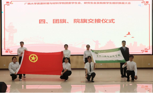学院团委、学生会和研究生会新老成员代表交接共青团团旗和明升官网