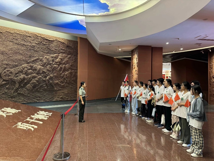 14日上午,实践团队来到位于桂林市全州县才湾镇的红军长征湘江战役纪念园。红军长征湘江战役纪念馆讲解员详细介绍陈列的文物和湘江战役中英勇牺牲的革命先烈事迹。看着珍贵的历史图片和实物,团队成员仿佛回到战火纷飞的年代,深刻体悟到革命先烈们坚定的革命理想与信念。