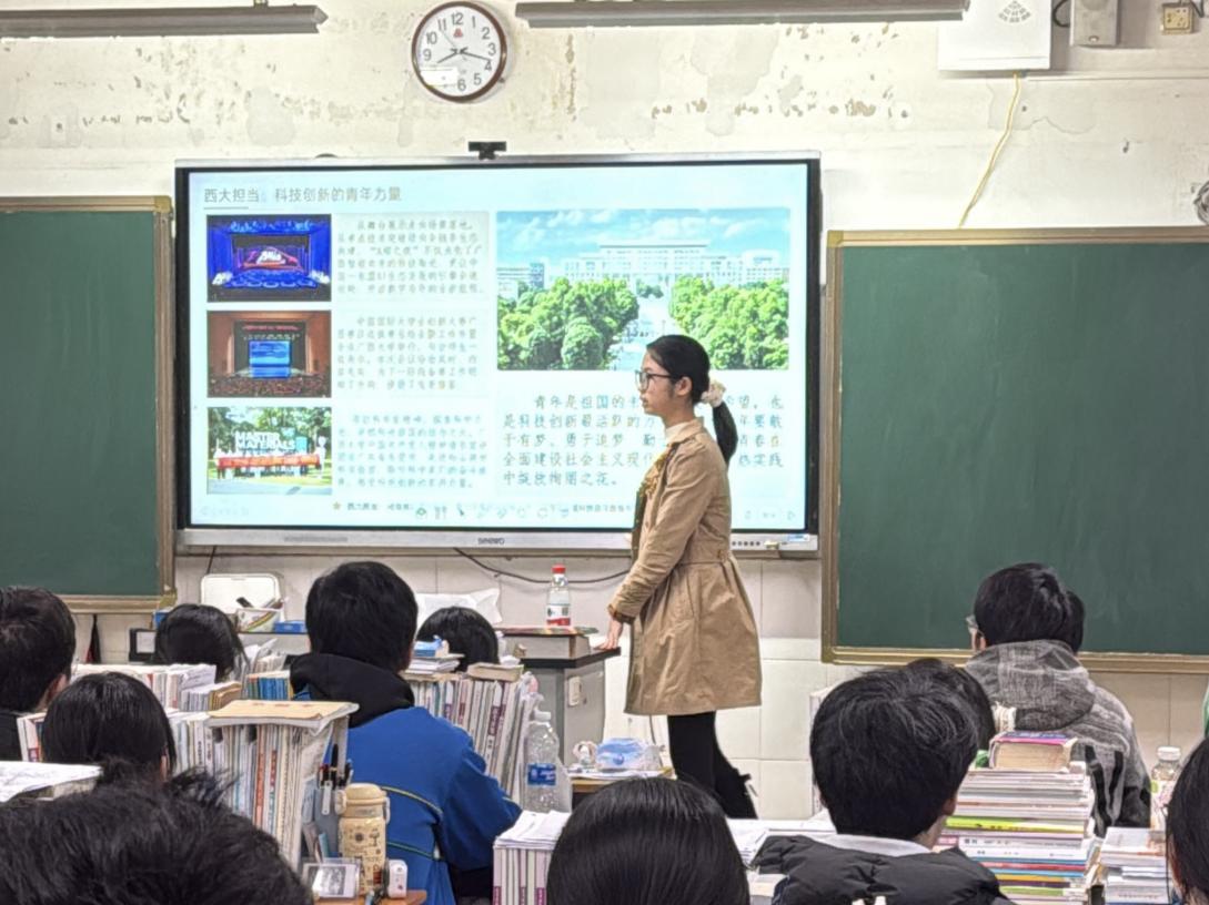 2月2日,钦州市第一中学的教室里座无虚席。黄琼锋同学以“展望2026,我们的信心从何而来”为主题,为高三学子带来一场充满力量感的宣讲。她从习近平主席新年贺词切入,结合平陆运河建设与西大学子参与科创实践的鲜活案例,讲述家乡发展与青年担当。视频与PPT交相辉映,党的创新理论与西大科创故事相互映照,既传递了中国式现代化的坚定信心,也展现了西大学子实学实干的青春风采。