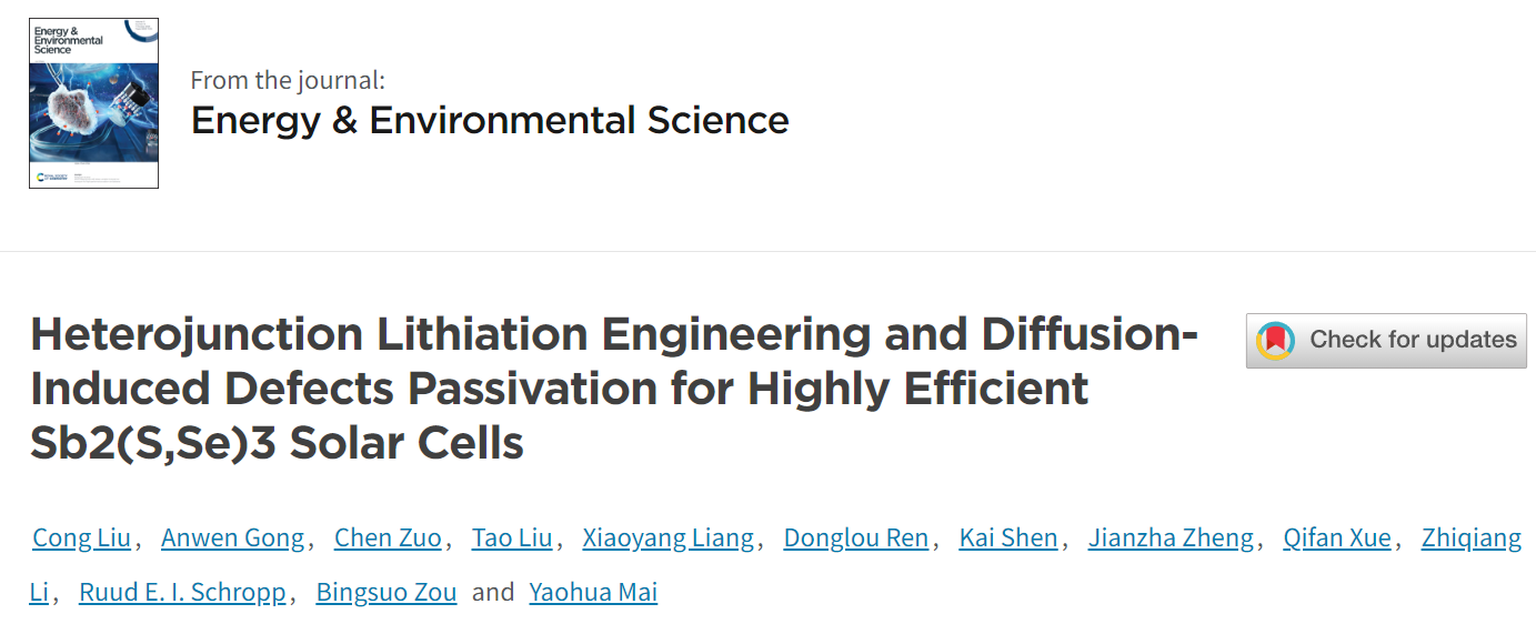 近日,能源领域顶级期刊Energy & Environmental Science(影响因子:32.4)以“Heterojunction Lithiation Engineering and Diffusion-Induced Defects Passivation for Highly Efficient Sb2(S,Se)3 Solar Cells”为题,报道了明升88