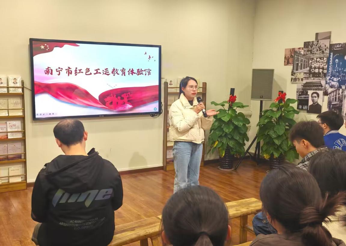 党委在南宁市红色工运教育体验馆开展“金色年华·党在资环材”系列活动之“工运铸魂凝众志,红潮励志润民心”主题党日活动。本次活动由材科本科生第三党支部书记、学工组辅导员卢小燕老师带队,各学生党支部党员代表参加。