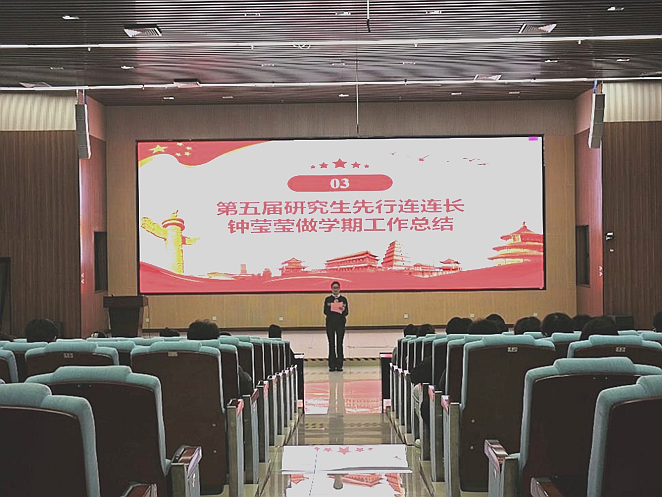 举行研究生先行连2025年秋季学期总结大会。学院团委副书记周大淇、学工组辅导员、研究生党支部相关负责人及研究生先行连全体成员参加。
