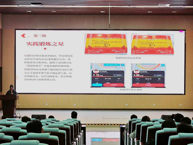 先行连连长钟莹莹围绕示范引领、档案管理、培养改革、纪律强化和反馈机制等方面,全面汇报了本学期工作开展情况及成效。本学期先行连共培养连员161人,其中38人顺利结业,取得了扎实的育人成果。优秀小组代表依次上台分享实践心得与成长体会,充分展现了先行连成员积极进取、团结向上的精神风貌。
