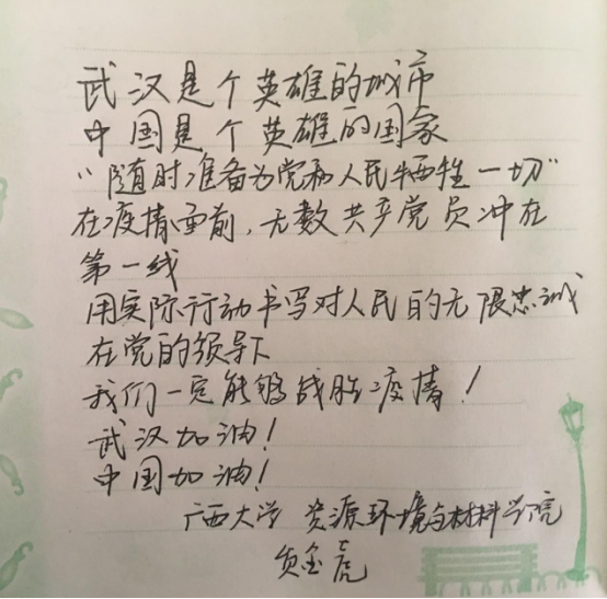 作为当代大学生,在战疫初期,我们主动向村委建议封村封路,也取得了一定的效果。这是自己仅有的一点贡献!