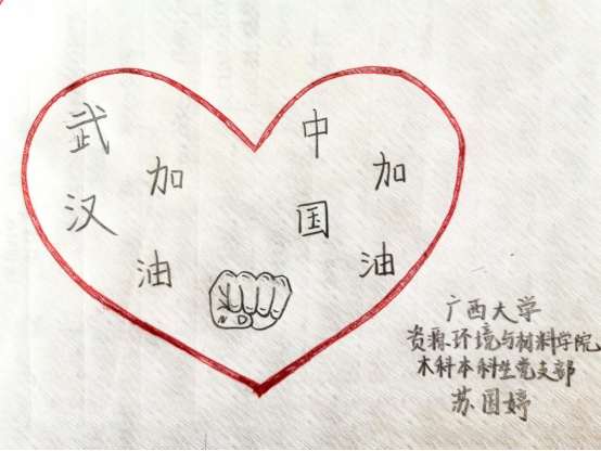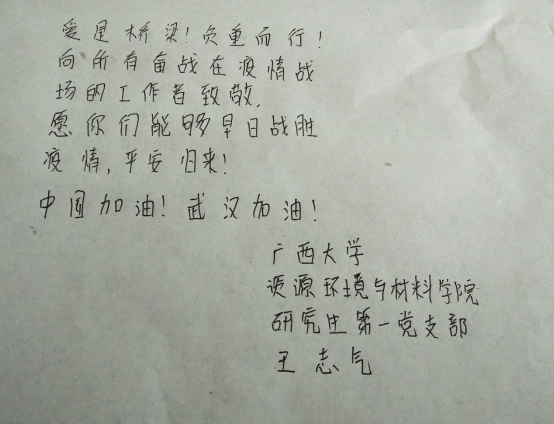 用手中的笔和纸表达对战“疫”工作者的感恩和祝福
